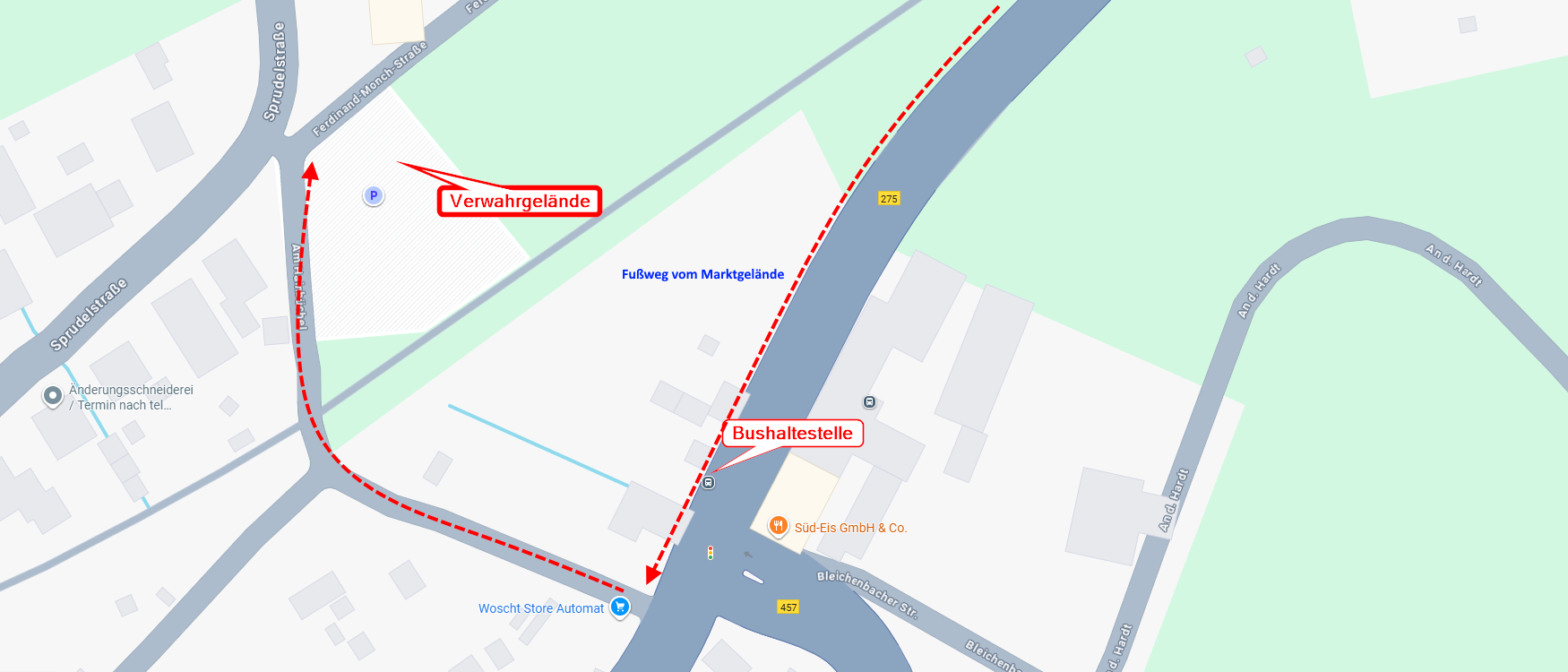 Ihr Fahrzeug wurde abgeschleppt und befindet sich auf dem Verwahrgelände im Stadtteil Selters, Sprudelstraße. Dieses ist für Sie über den den ÖPNV Linie FB-20, FB-22 und über die Sonderbuslinie KM 3 (Haltestelle Sprudelstraße oder Bleichenbacher Straße) oder zu Fuß erreichbar.