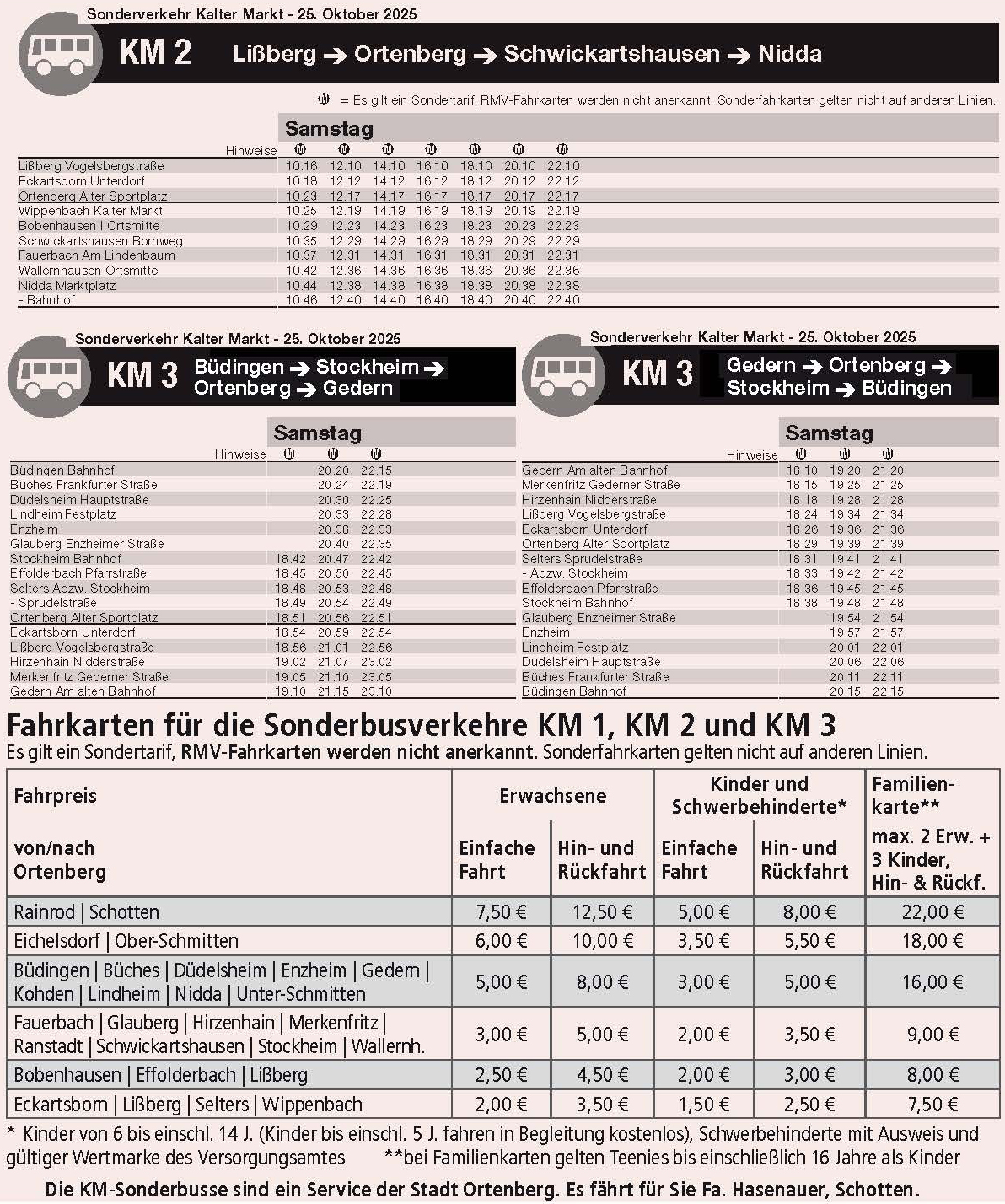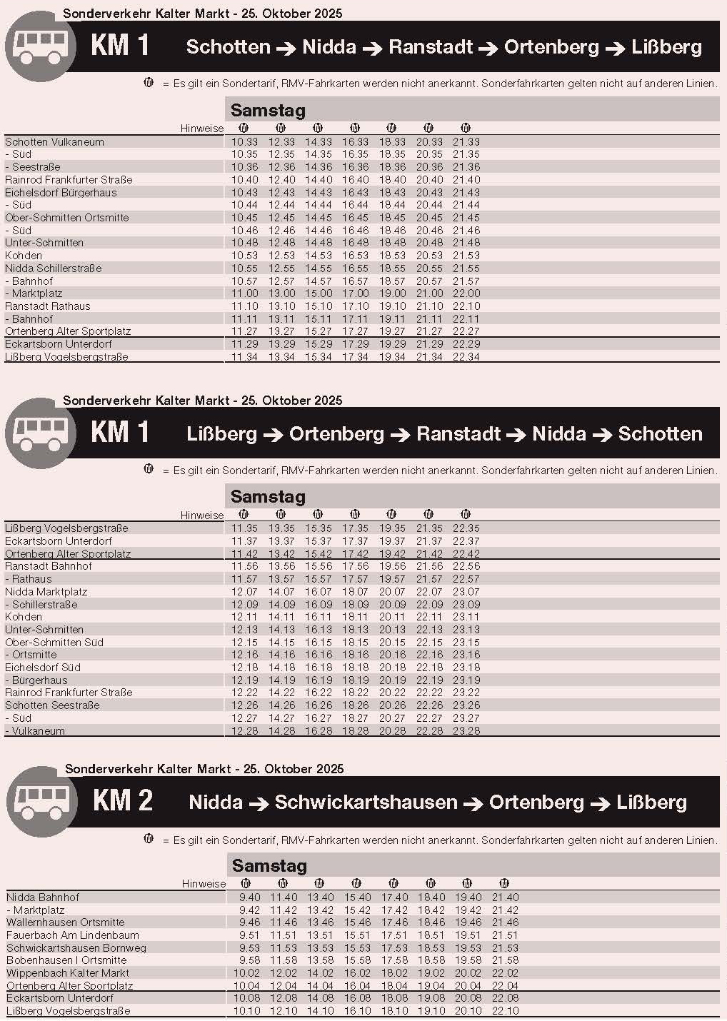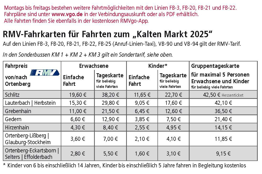 Zusammengestellt von der VGO - Nutzen Sie bitte auch die Fahrplanauskunft der VGO (alle Verbindungen zum Kalten Markt, sowie alle Fahrtmöglichkeiten der Linien FB-03, FB-20, FB-21 und FB-22). Es gibt viele zusätzliche Verbindungen zum Markt.