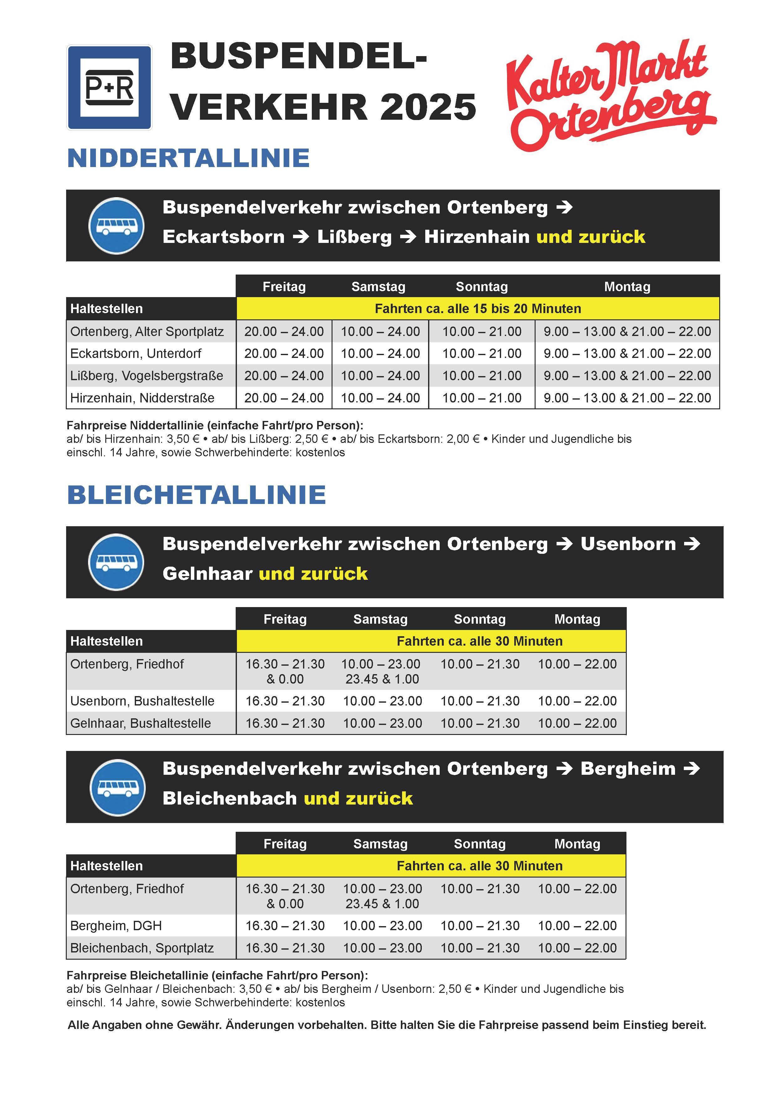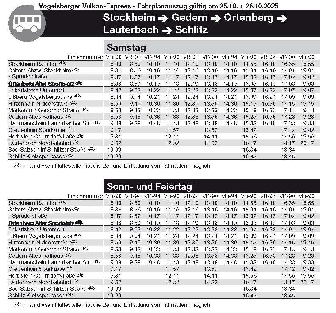 Für weitere Verbindungen (z. B. aus Richtung Stockheim, Bahnhof Stockheim, Effolderbach, Selters, etc.) stehen Ihnen die Linienbusse über die Fahrplanauskunft des RMV zur Verfügung.